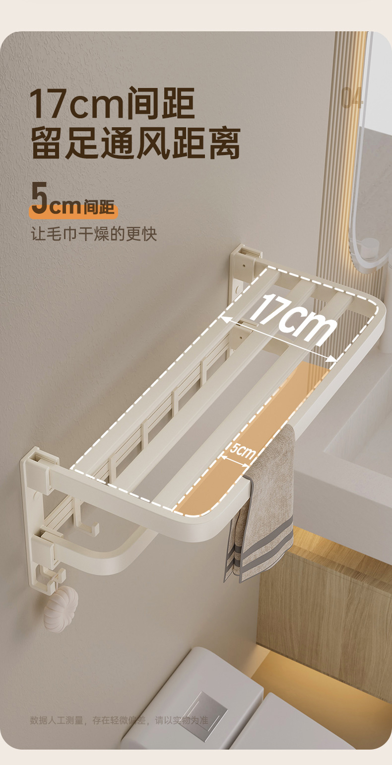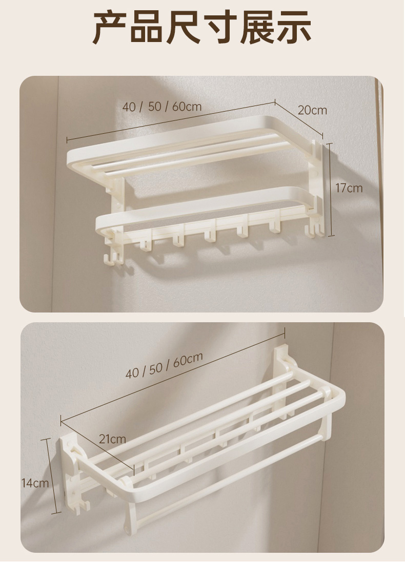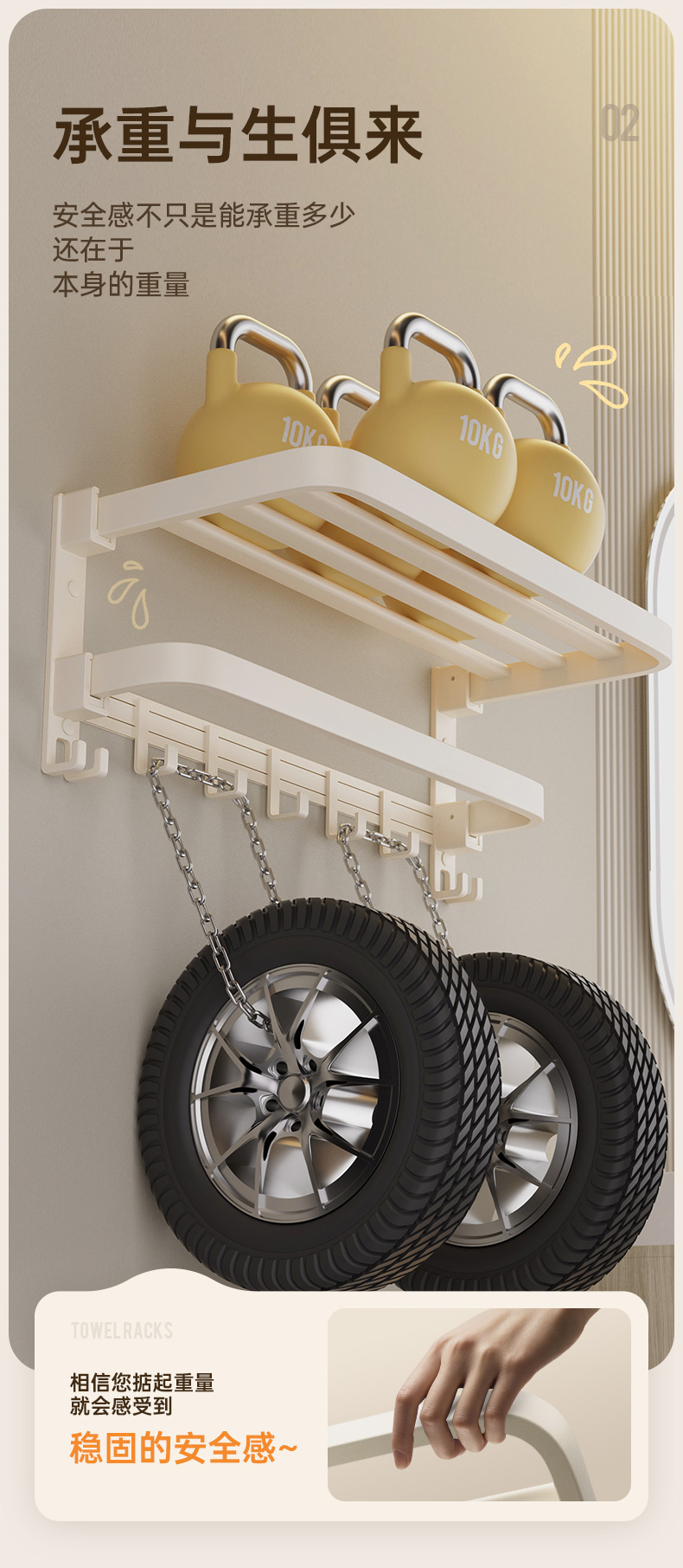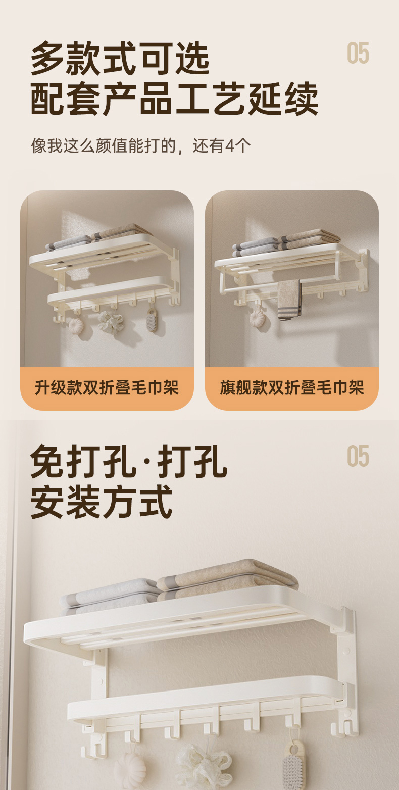 毛巾架奶油风卫生间置物架免打孔浴室架子厕所毛巾杆
