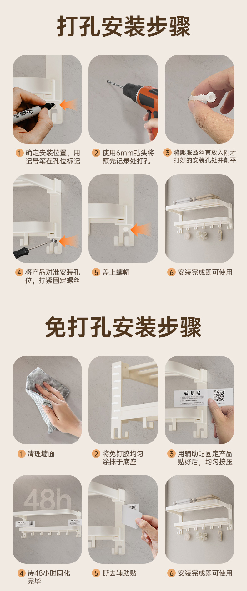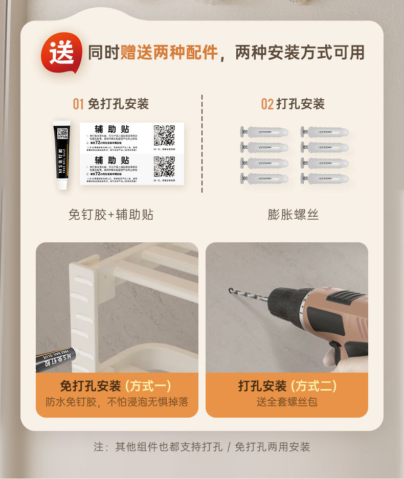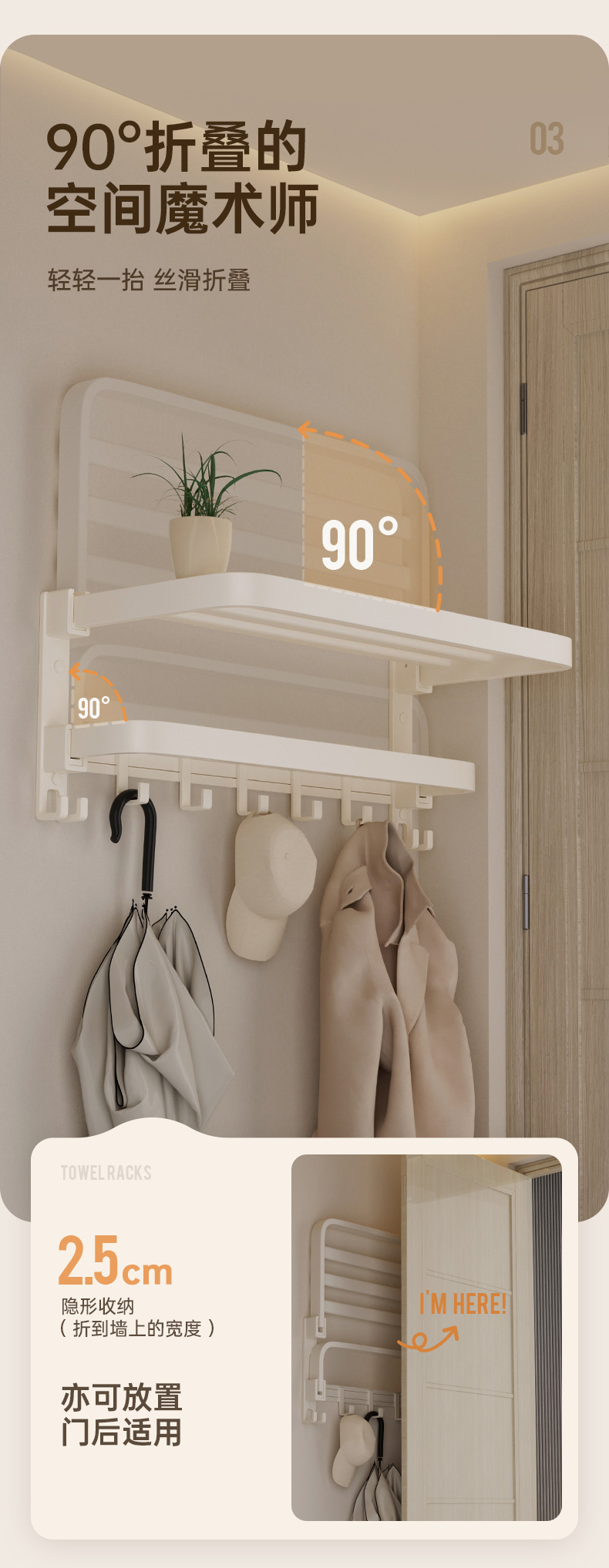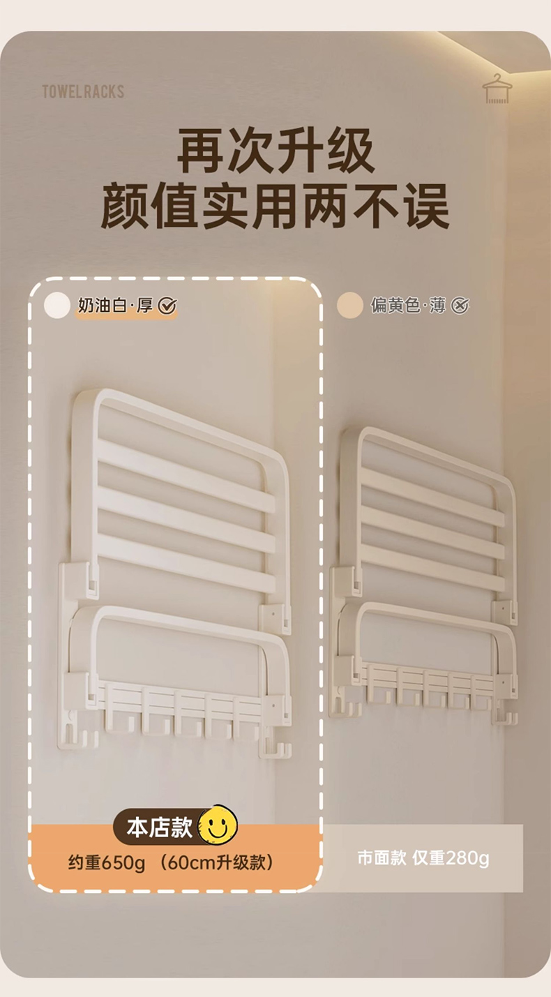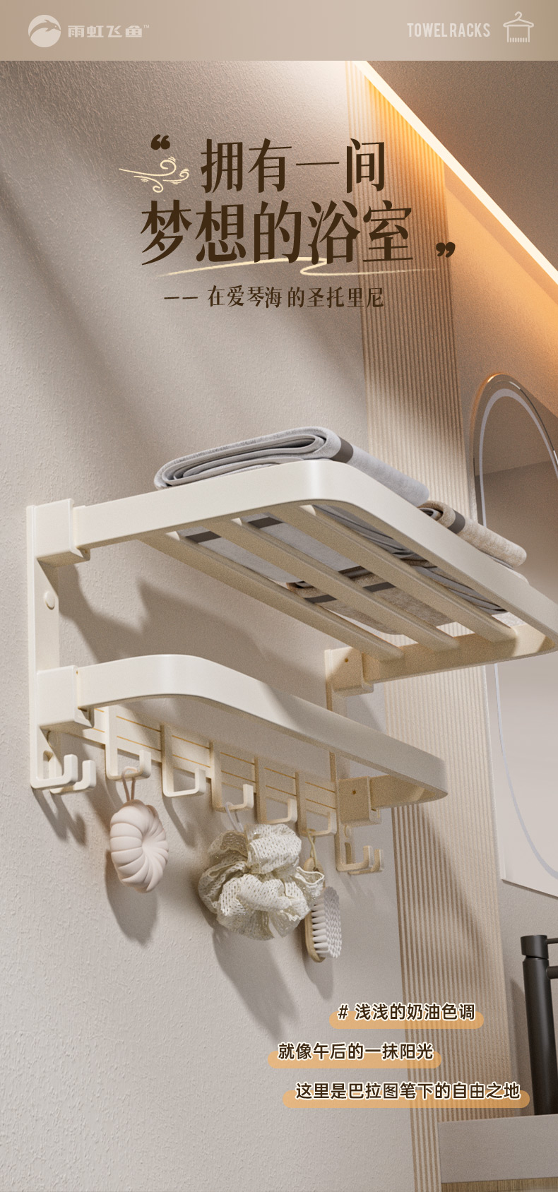 毛巾架奶油风卫生间置物架免打孔浴室架子厕所毛巾杆