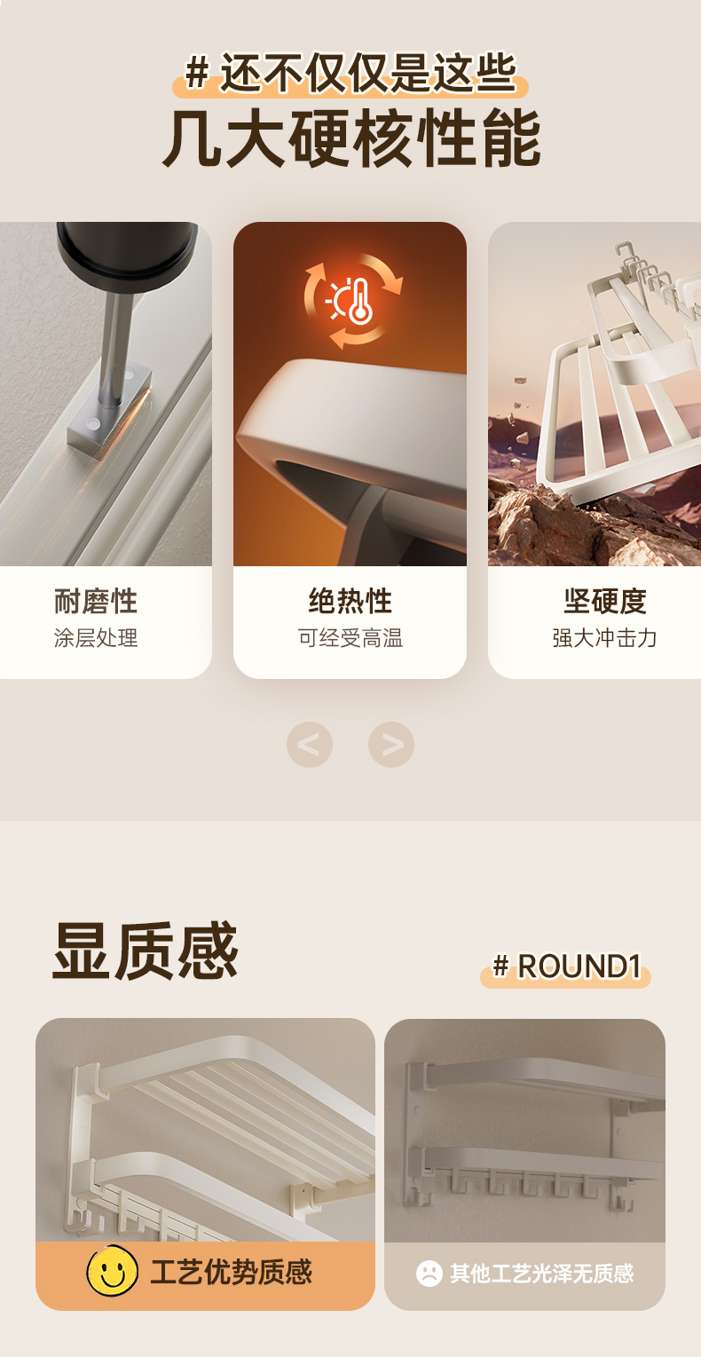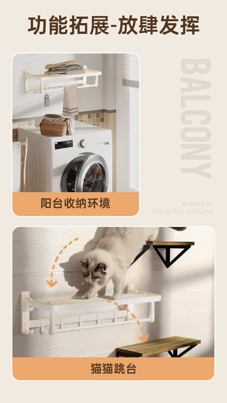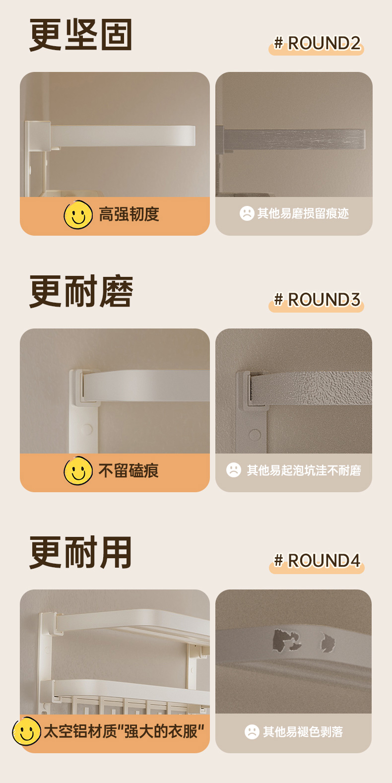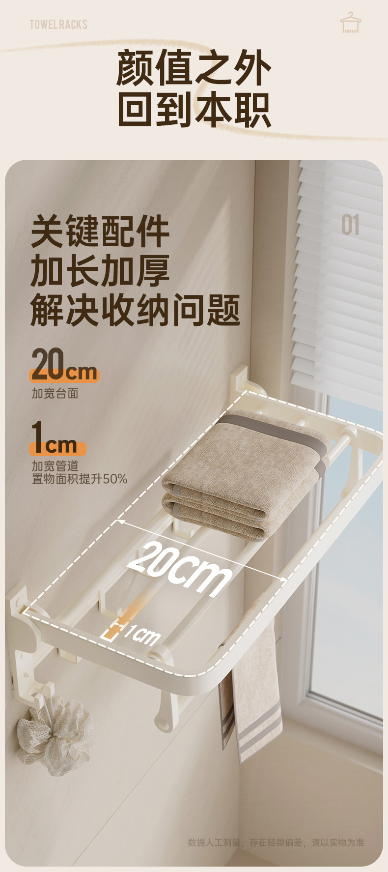 毛巾架奶油风卫生间置物架免打孔浴室架子厕所毛巾杆