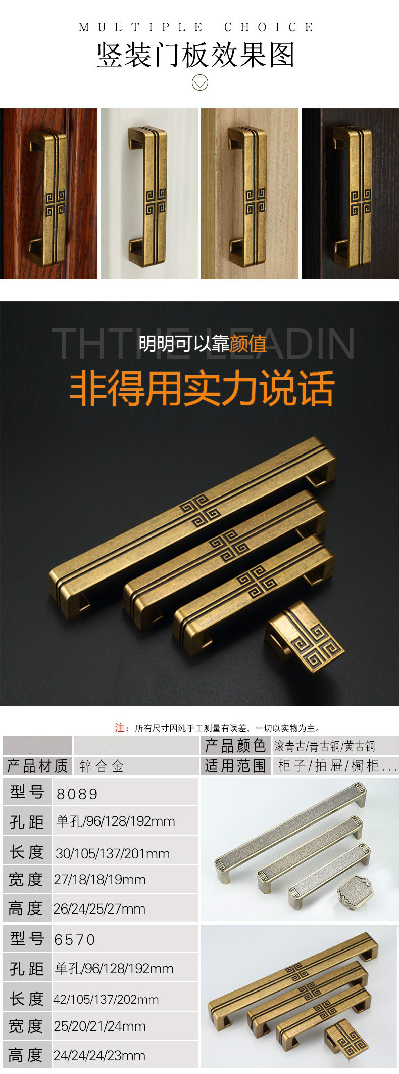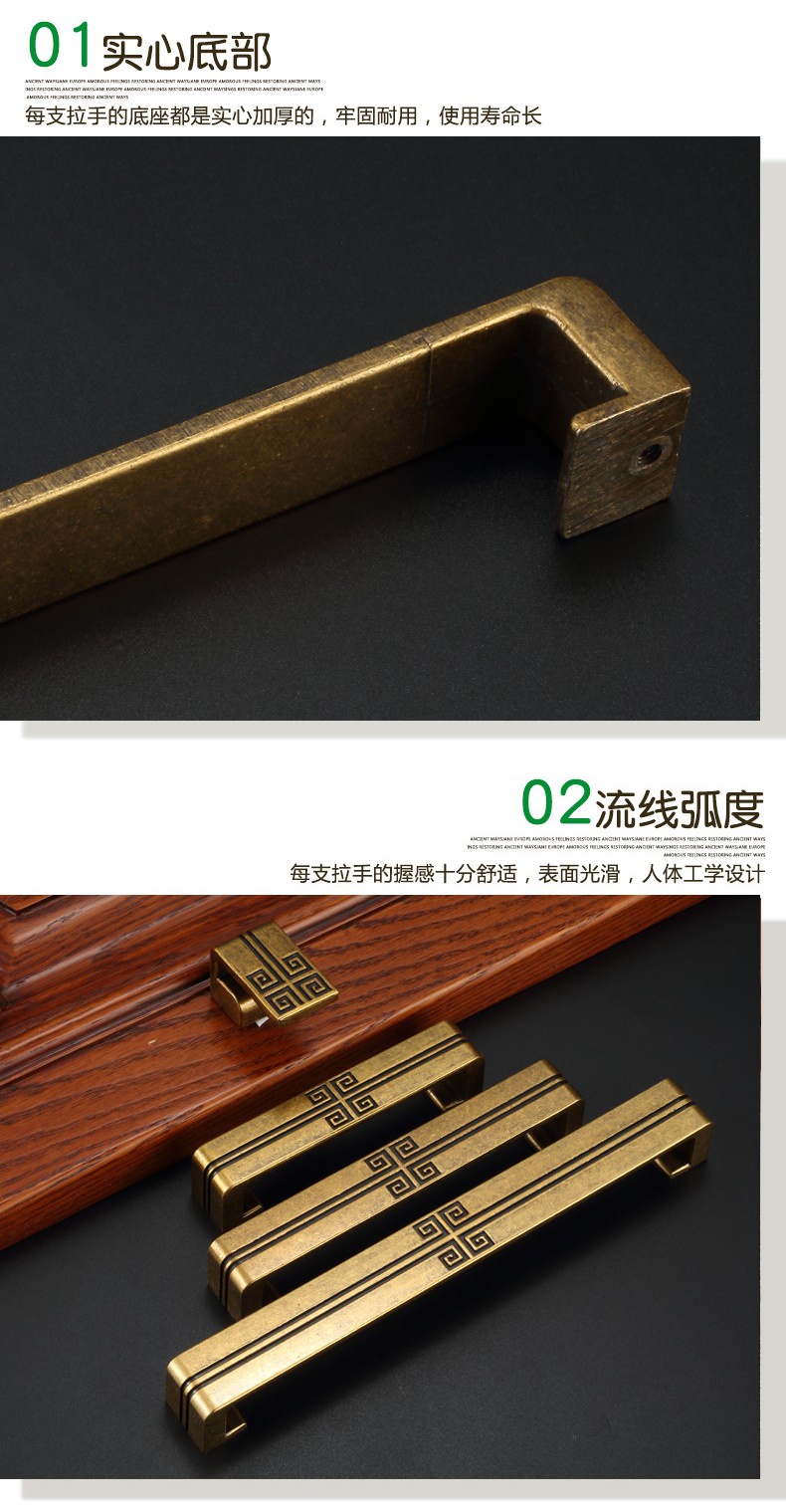 仿古衣柜拉手 中式古铜厨把手鞋柜子橱柜抽屉新中式拉手五金 8089-96黄古铜