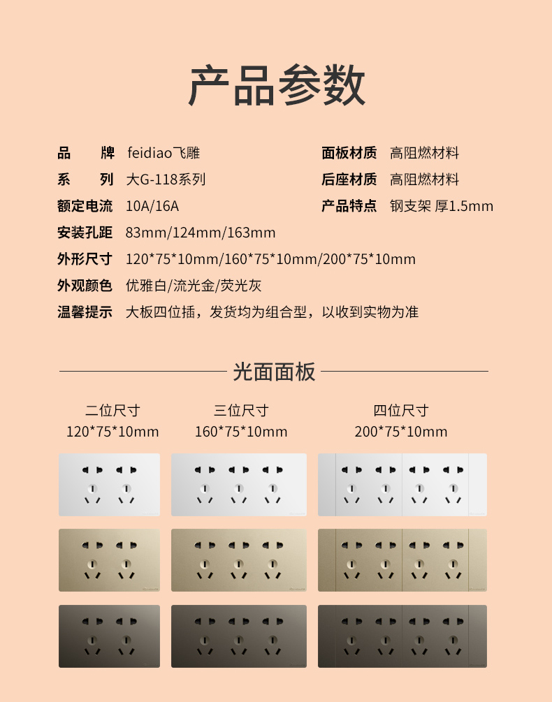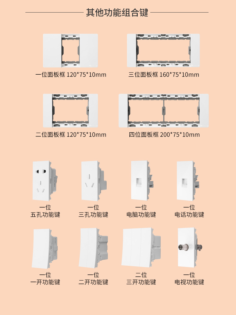 首页> 装饰开关> 插排> 飞雕(FEIDIAO)118型开关插座面板 功能键模块件自由组合搭配