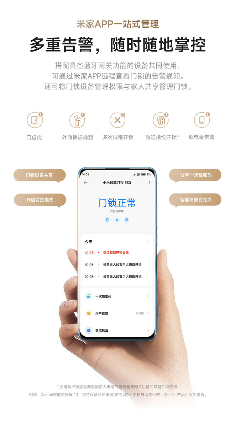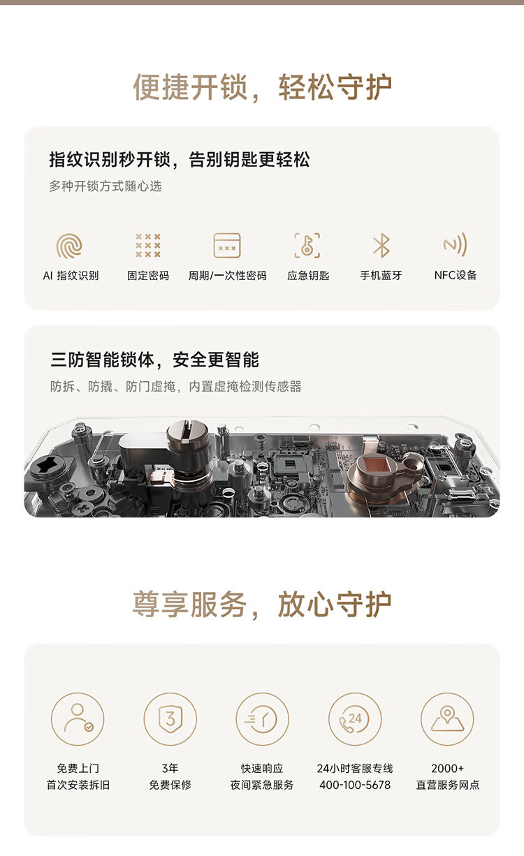 开锁方式:APP,刷卡,密码,指纹