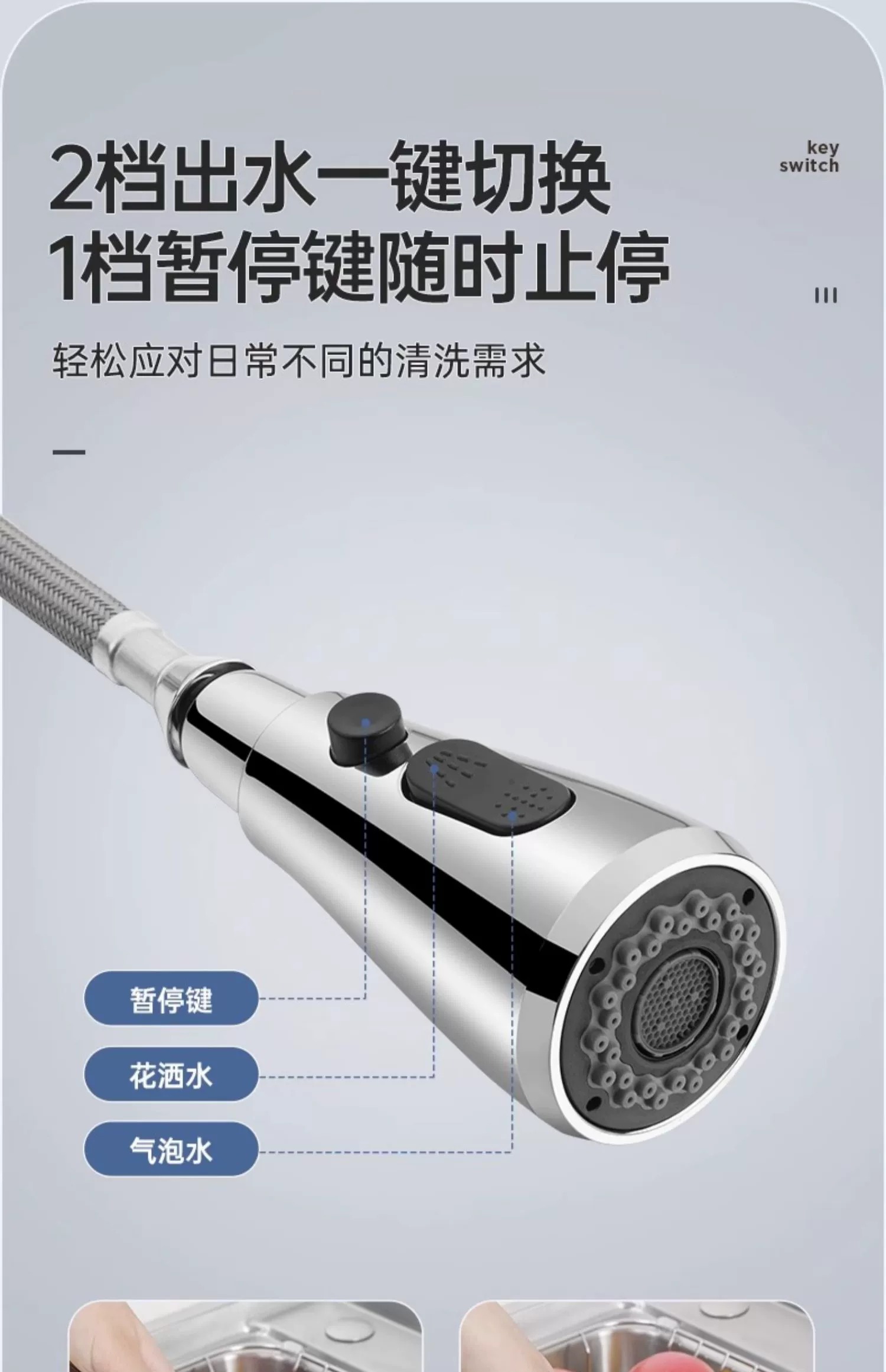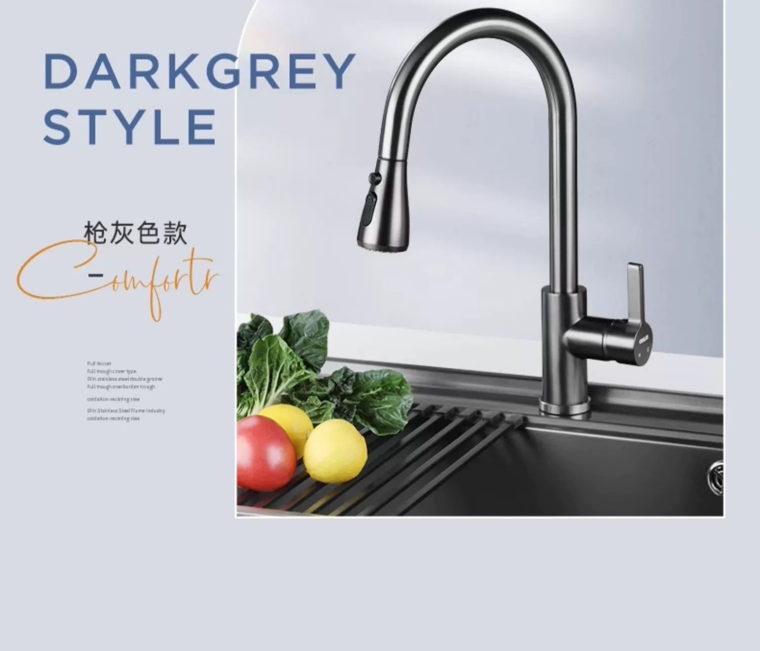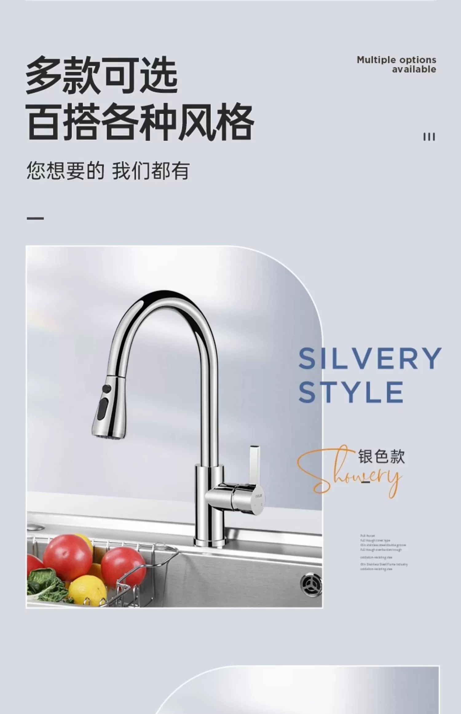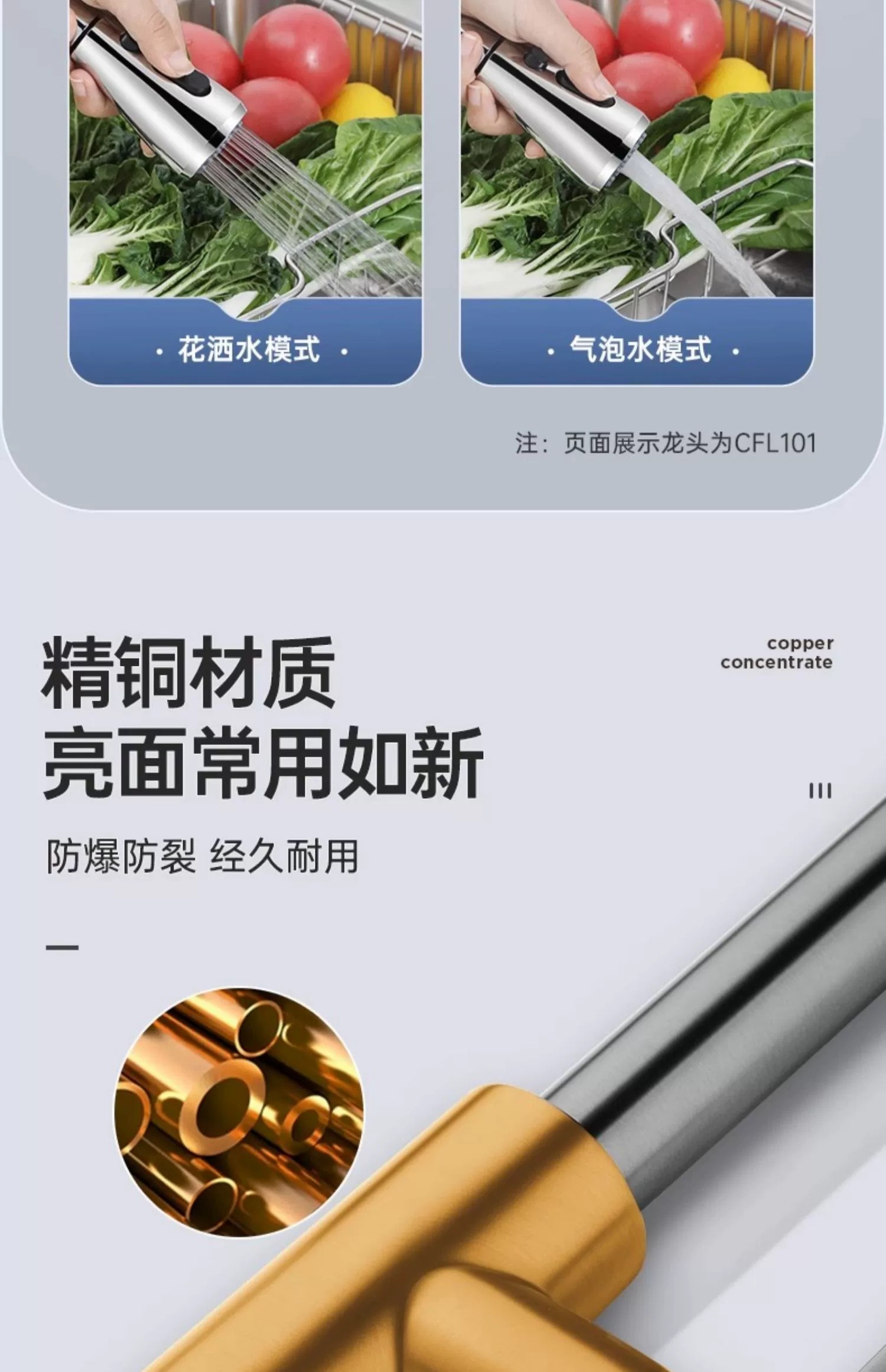 • 欧琳抽拉龙头冷热水龙头厨房抽拉龙头水槽龙头双功能 CFL101精铜高抛抽拉(花洒泡沫出水)