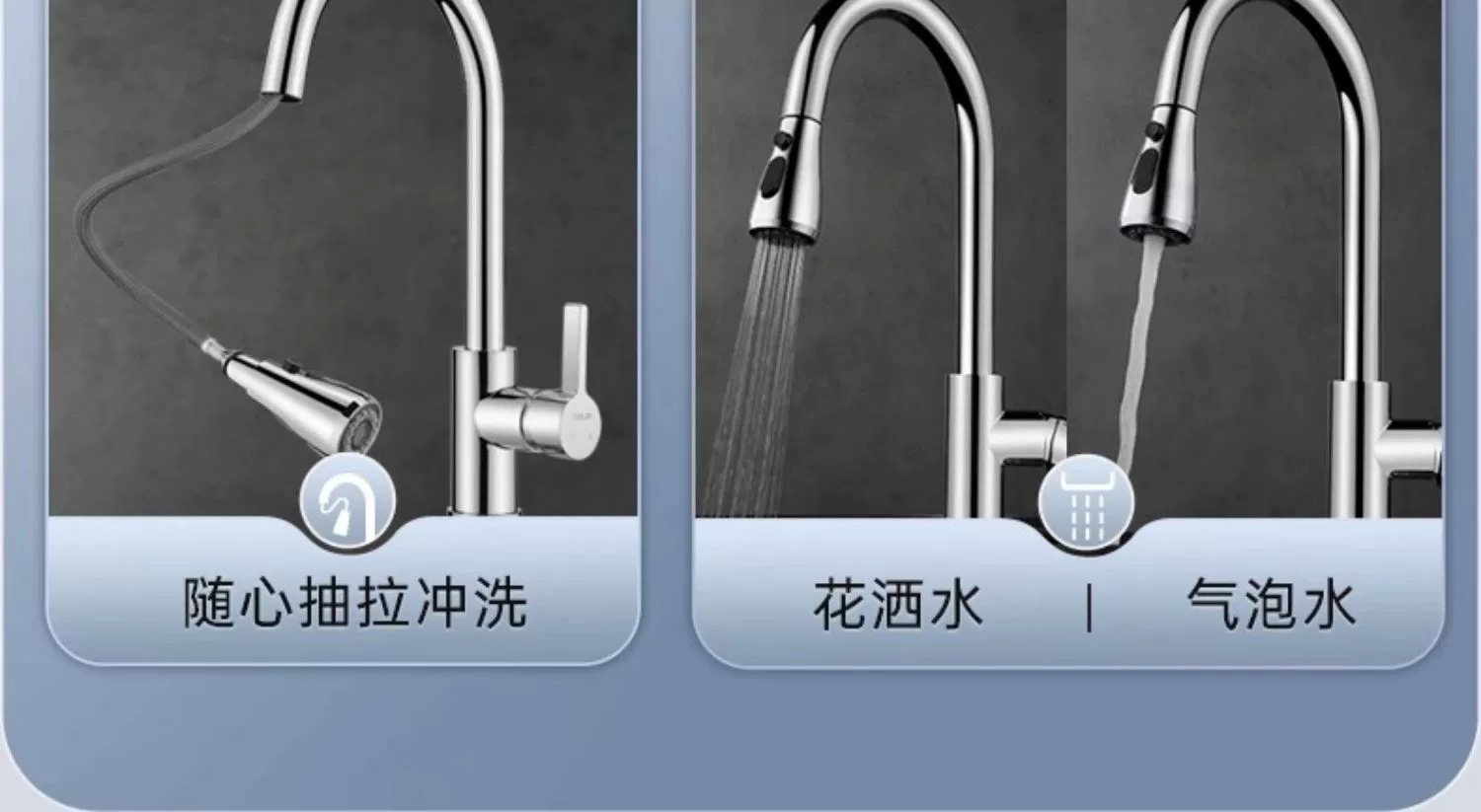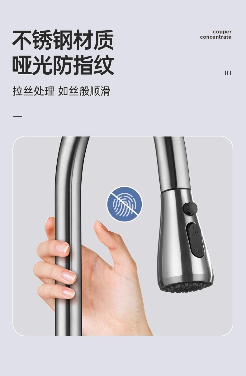 • 鲸(SSWW)厨房冷热水龙头飞雨瀑布出水304不锈钢洗菜盆龙头抽拉式水槽龙头 拉丝原色
