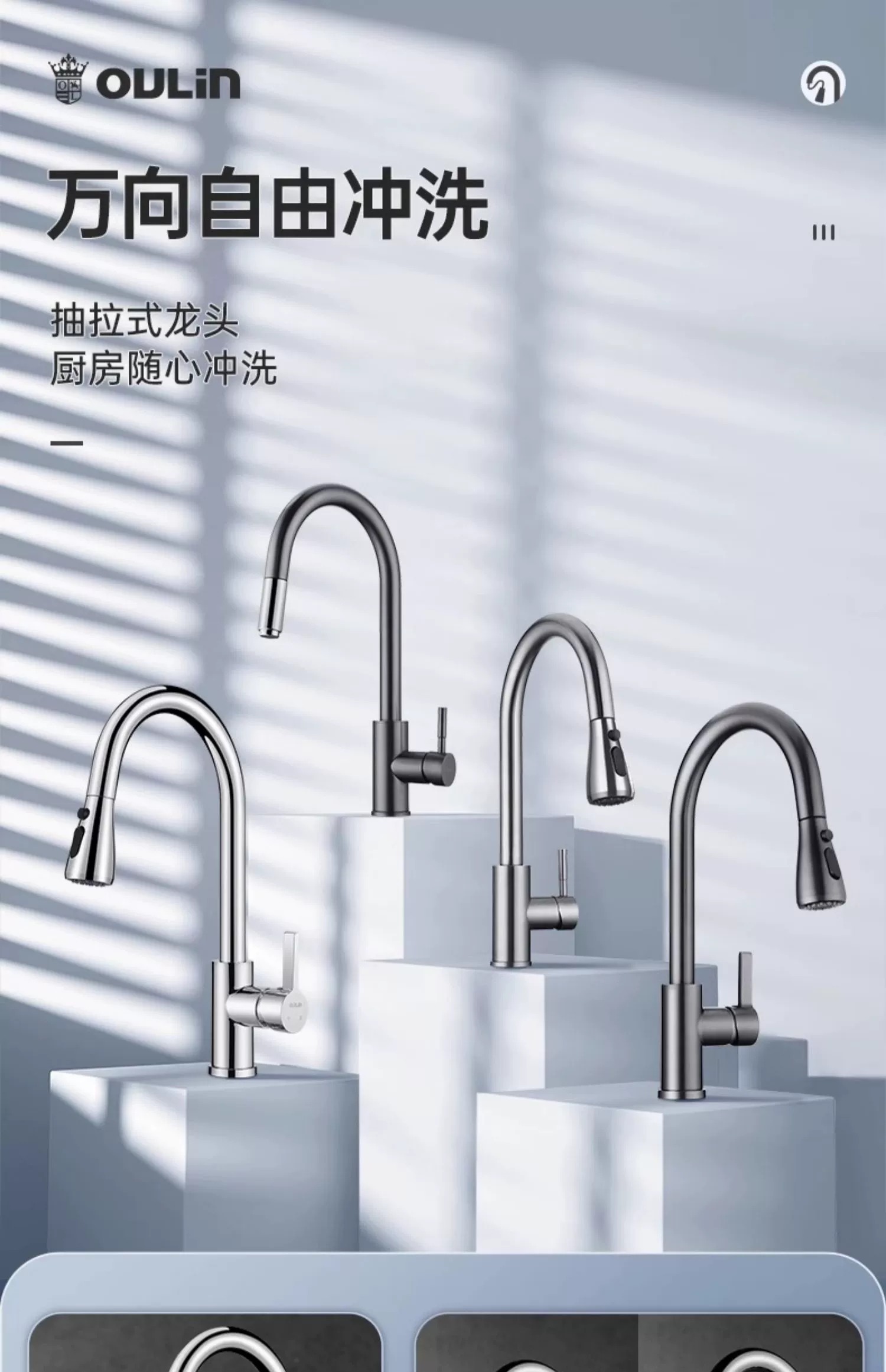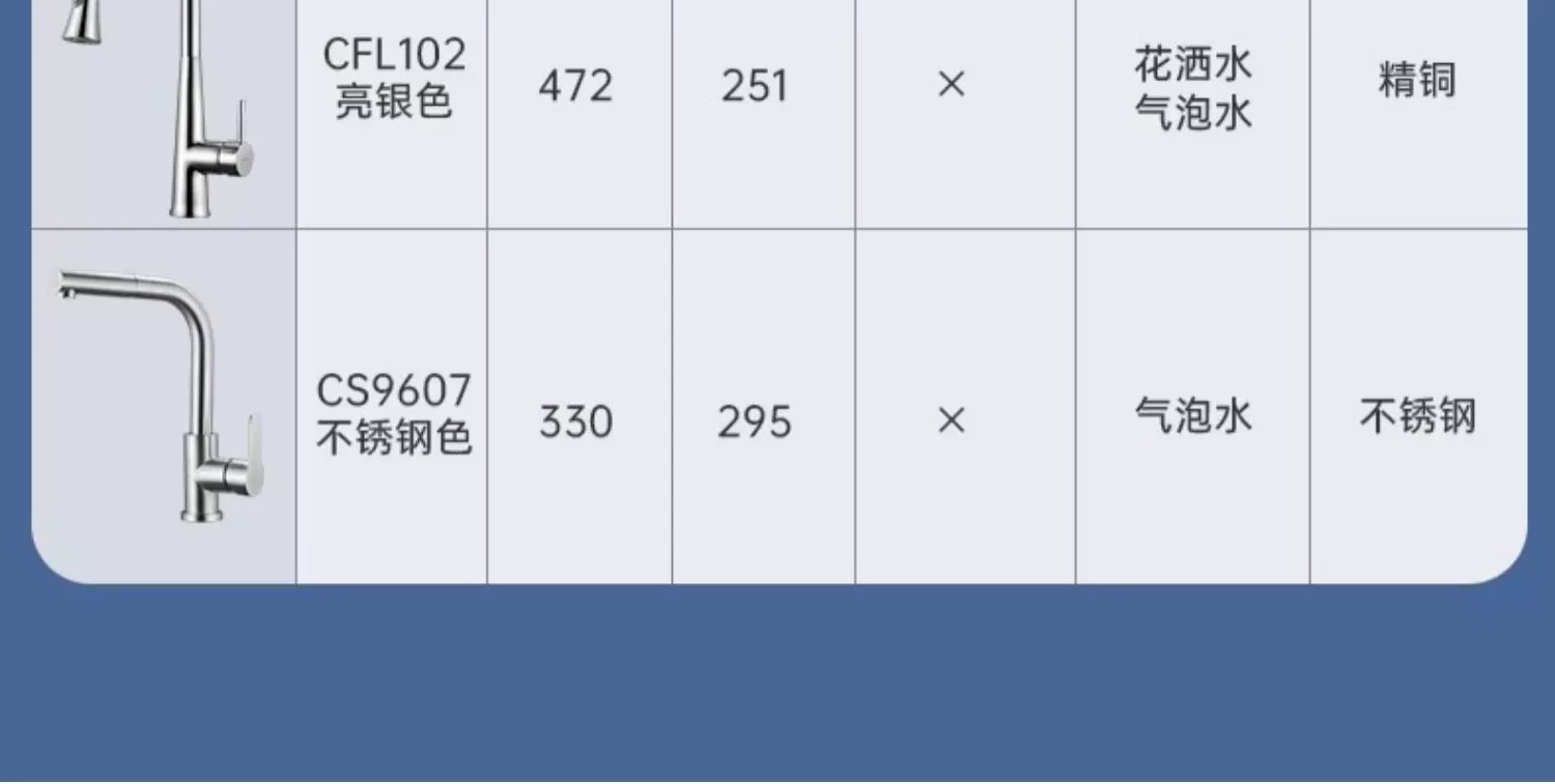 首页> 厨房卫浴> 水龙头> 欧琳抽拉龙头冷热水龙头厨房抽拉龙头水槽龙头双功能 CFL101精铜高抛抽拉(花洒泡沫出水)