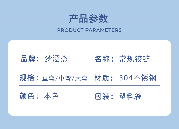 梦涵杰 衣柜橱柜门铰链 常规铰链-不锈钢/直弯 只