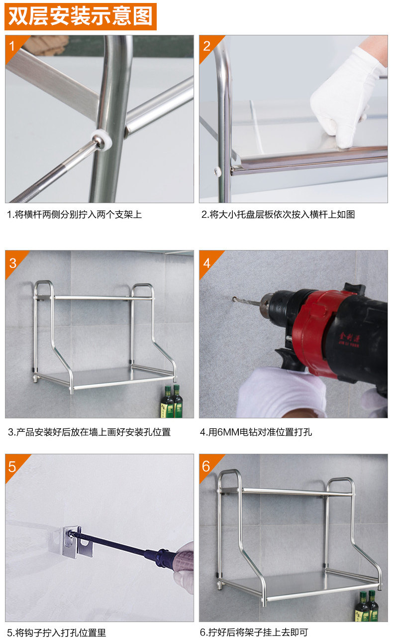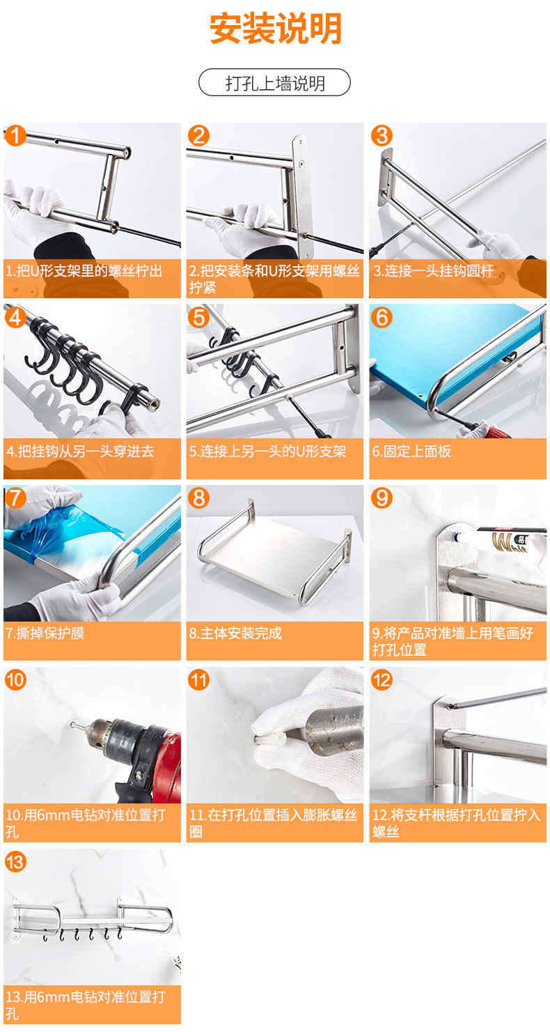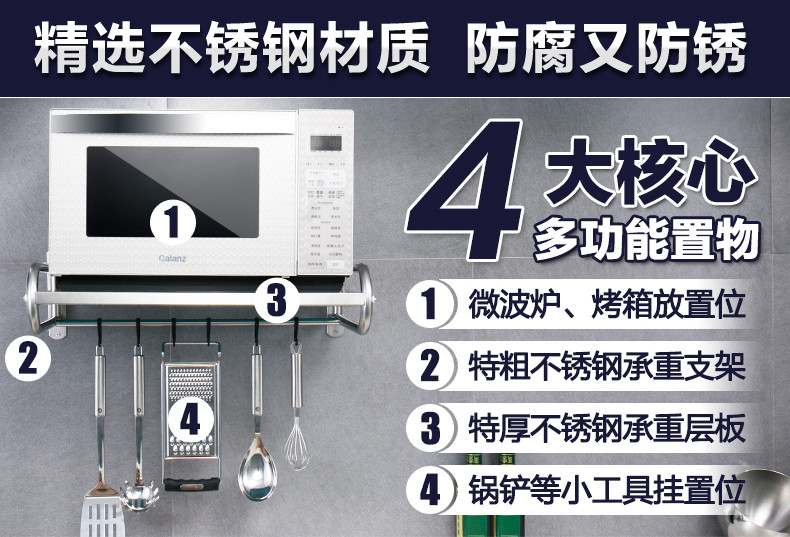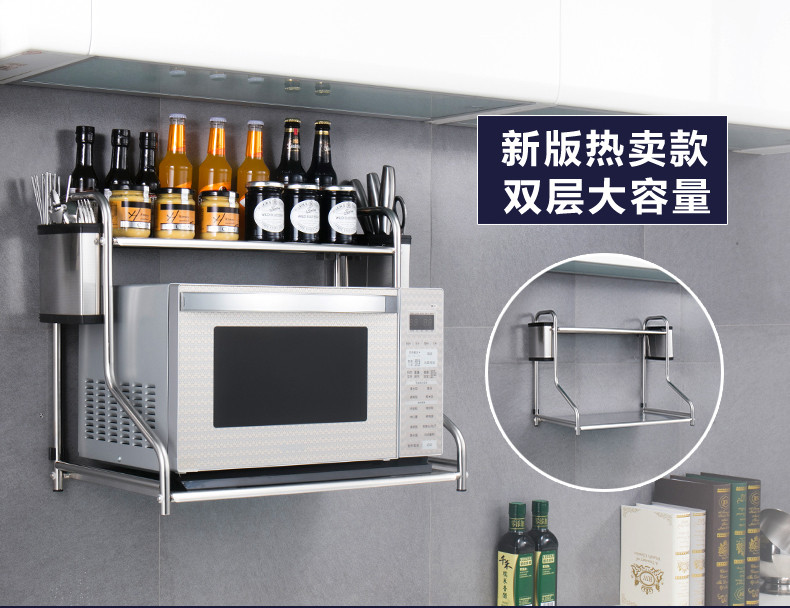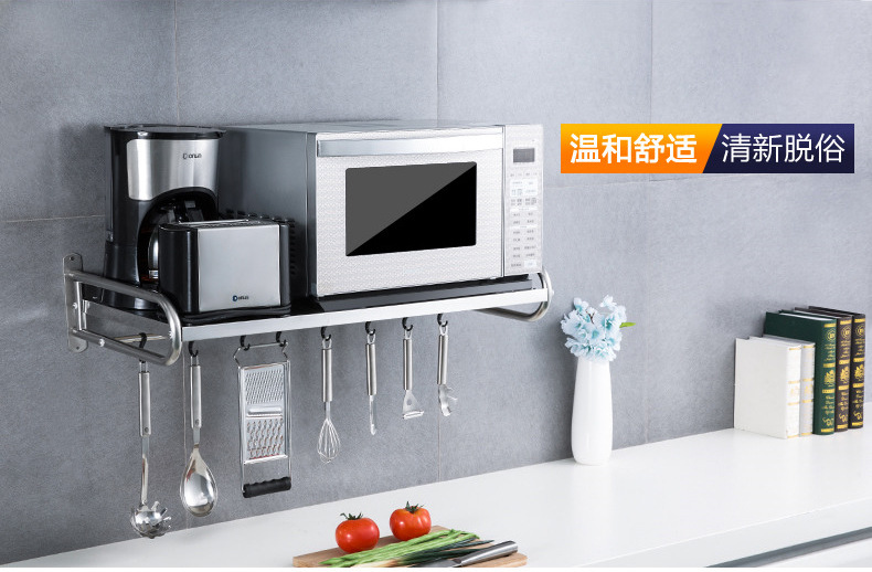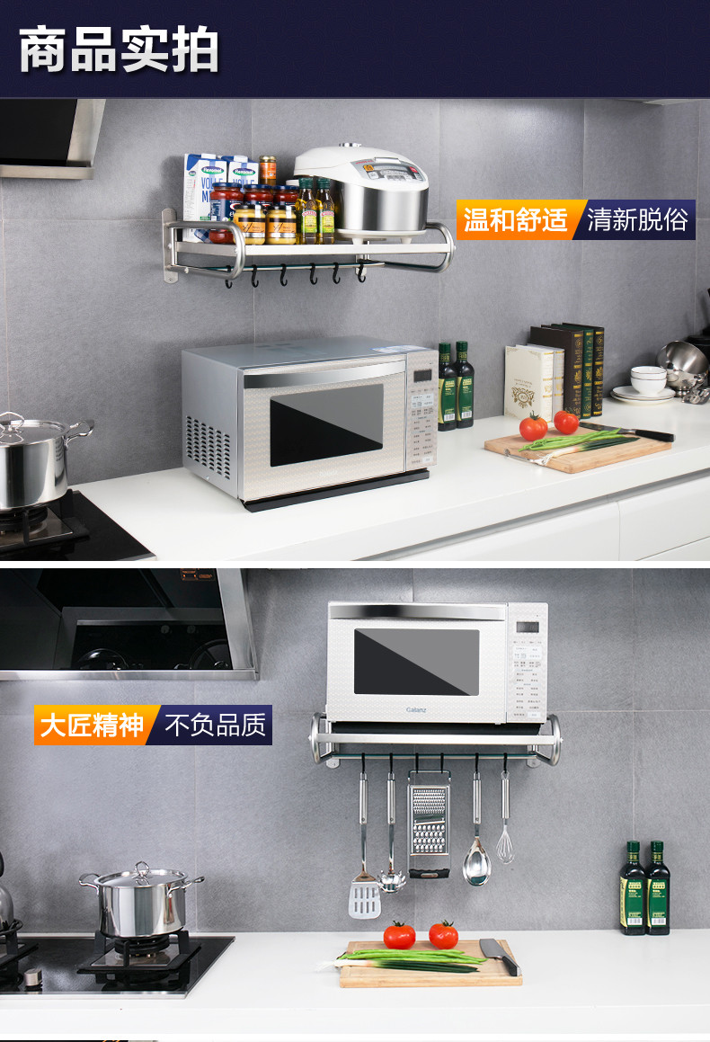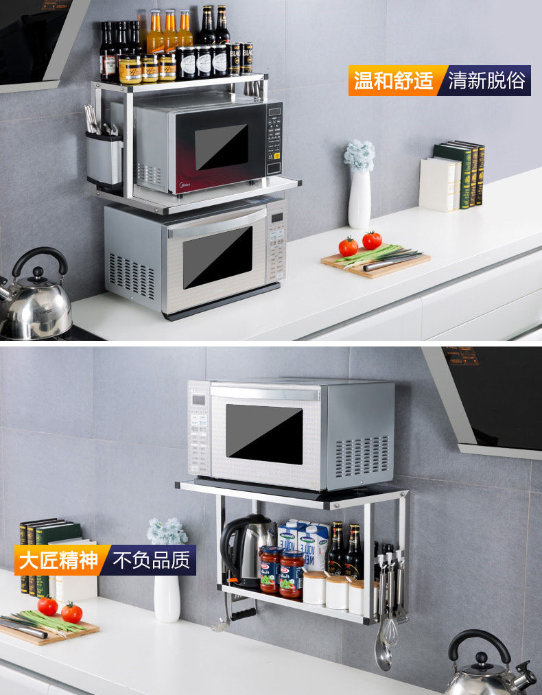 首页> 装饰五金> 置物架> 304不锈钢微波炉置物架 壁挂式烤箱架子挂架挂墙厨房收纳墙上支架 三维工匠